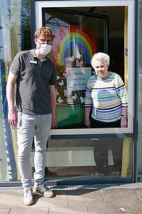 Gerade in der Zeit des generellen Besuchsverbots in Pflegeeinrichtungen sind das sehr wertvolle Gesten für die Bewohnerinnen und Bewohner. Da zurzeit die Tagespflegeeinrichtungen geschlossen sind, verstärkt das Team der Tagespflege des St. Magnus-Hauses nun die Kolleginnen und Kollegen in der Betreuung für die Bewohner. Bei einer Aktion entstand beispielsweise ein bunter Regenbogen, der als Symbol der Aktion #gemeinsamgegeneinsam nun als Dankeschön die Fensterfront des Cafés im St. Magnus-Haus schmückt.